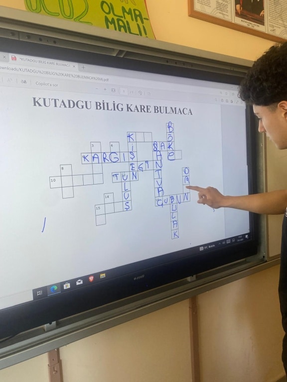 Okulumuzda "Dilimizin Zenginlikleri Projesi" kapsamında Banu SERTKAYA öğretmenimizin danışmanlığında Kutadgu Bilig - "Kare Bulmaca" ve "Bilen Oturur" etkinliklerini gerçekleştirdiler.